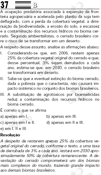 - Considerando-se que, em 2006, restem apenas 25% da cobertura vegetal original do cerrado e que, desse percentual, 3% sejam derrubados a cada ano, estima-se que, em 2030, o cerrado brasileiro se transformará em deserto.