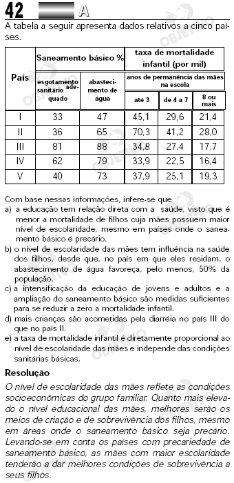 a taxa de mortalidade infantil é diretamente proporcional ao nível de escolaridade das mães e independe das condições sanitárias básicas.