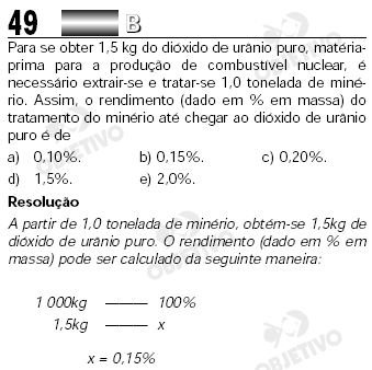 Assim, o rendimento (dado em % em massa) do tratamento do minério até chegar ao dióxido de urânio puro é de