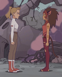 De volta a Etheria, o relacionamento deles sofre alguns solavancos novamente, graças em grande parte às maquinações de Shadow Weaver. A disposição de Adora de seguir o plano de Shadow Weaver, apesar do alto risco de sua própria morte, deixa Catra com raiva e magoada. Mas, eventualmente, Catra consegue ver que o desejo de Adora de proteger o mundo não diminui seu amor por Catra.