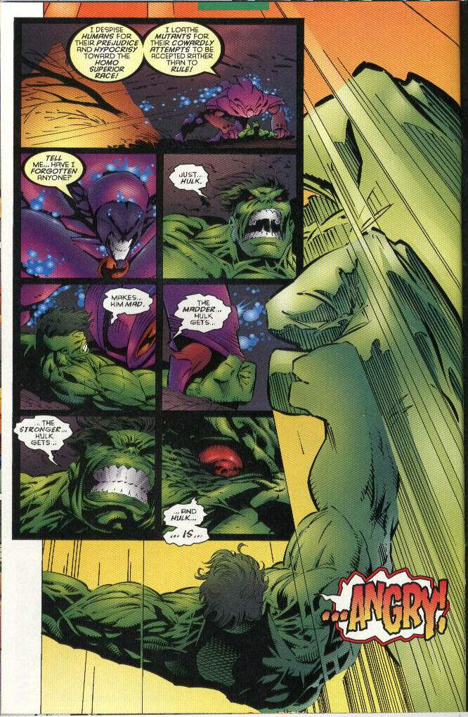 Velocidade: Massivamente Acima da Luz+ (Comparável a muitos super-heróis desse porte como Hulk ou Thor. Também escala de Magneto que analisou toda a estrutura atômica de Colossus em alguns segundos). | Massivamente Acima da Luz+ (Vastamente superior a antes. Superior a um Hulk completamente enfurecido).