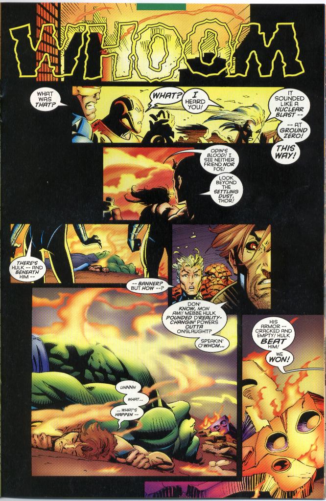 Durabilidade: No mínimo Nível Sistema Solar (Escalando ao ataque, deve ter aguentado pelo menos algum golpe do Fanático. Sua armadura é feita de adamantium). | No mínimo Nível Sistema Solar, possivelmente Nível Universal (Muito superior a antes, aguentou ataques de um Hulk completamente enfurecido).